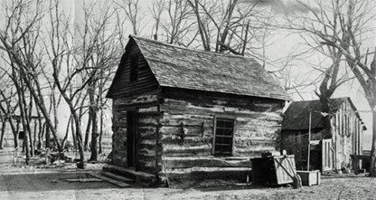 In 1861, James "Grandpa" Hollingsworth, was superintendent of a very successful Sunday School in the Johnson cabin. Hollingsworth and his family had come from England; lived briefly in Boston and Wisconsin; then decided to make Nebraska their home. They came in a covered wagon, driving one ox and one horse. It was a hard trip and two of their children became seriously ill and died on the way. In the meantime, the Johnsons had built a stick frame home on their farm. The Hollingsworth's rented the Johnson's cabin for two seasons. In 1857, the cabin was known as the Methodist parsonage and later in 1861 as the Methodist Sunday School and meeting place. Today the Johnson Cabin Museum can be seen in the Blue Springs City Park. (taken from: EARLY METHODISM IN BLUE SPRINGS by Eugene Watson 1982)