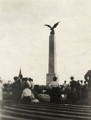 The Fulton Monument Company was contracted to build and install the monument at a cost of $1,450 for the monument made from dark barre granite with light barre base, $153 for drafting and lettering, $550 for the bronze eagle, $100 for the foundation and $143.71 for shipping and installation, for a total of $2,690.71.