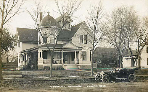 Lake Bridenthal was born in Monmouth, Illinois to Jasper William & Elenor Elan (Butler) Bridenthal. They were married in 1860 and raised six children. Mae married C. W. Robertson, who operated a dry-goods and grocery store in Wymore for 25 years and later moved to Lincoln. Charles was a traveling salesman for the wholesale house of Sprague, Warner & Company of Chicago who lived in Minneapolis, Minn. Richard was employed by the Chicago, Burlington & Quincy Railroad. He and his wife Mary (Owens) lived in Wymore. Their daughter, Maude (1865-1887) died of influenza. Their oldest son, Kenneth farmed near Wymore but died in 1891 of pneumonia at the age of 29 leaving a wife and three children.