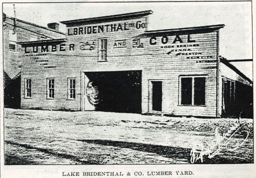 Monmouth CollegeTheir son, Lake, attended Monmouth College and was affiliated with Phi Delta Theta. Lake moved with his family to Gage County in 1884 where they farmed in Sicily township until 1904. Lake taught school in Virginia, NE. He became casher of the City National Bank in 1887 at the age of 22 and went on to invest in the organization of the First National Bank in 1889. In the summer of 1900, Lake sold his interest in the First National Bank to devote his time to the lumber yards in Wymore and Barneston. The Bridenthals had inherited the lumber yards from Iva's father upon his death in 1908. Lake sold the Wymore yard in 1911 and the Barneston yard in 1912.