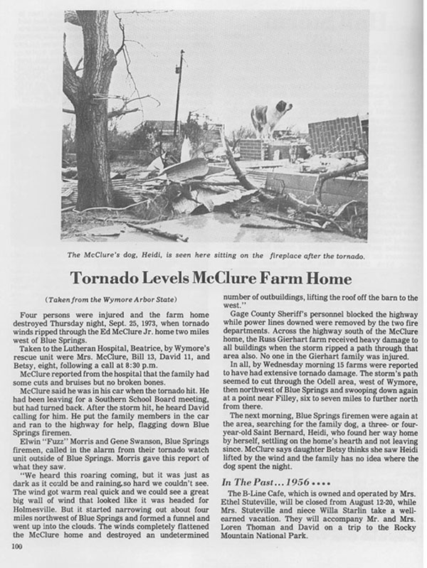 In 1940, Lake was living with Al and Helen Wood in Wymore. He passed on two years later at the Lady Gray home in Lincoln on August 16, 1942 after a lingering illness. He is buried with other Bridenthal family in the Wymore Cemetery.Ed McClure III moved his young family to the farm after serving in the military in 1958. They rebuilt after the 1973 tornado and the McClure family continues to live on the land.
